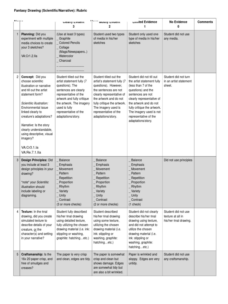 Technical drawing rubricFantasy drawing rubric 2015Rubric character sketch rubrics grade english doc language teaching trait wordRubrics for drawing at getdrawings